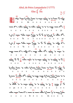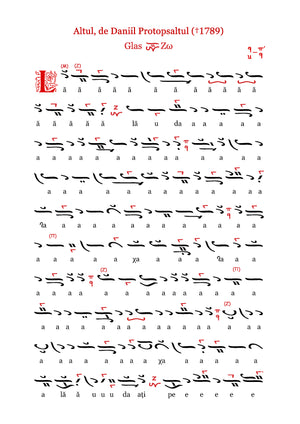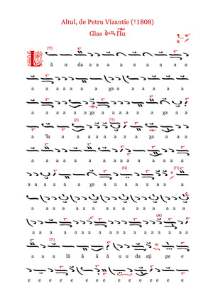 Textul românesc este așezat cu atenție sub neume, cu respect față de prosodia limbii, de accentuarea firească și de cursul melodic tradițional. Isoanele sunt indicate explicit, cu rol orientativ și modal, fără a altera caracterul monodic al cântării psaltice. Tehnoredactarea urmărește claritatea vizuală și stabilitatea necesară folosirii la strană.